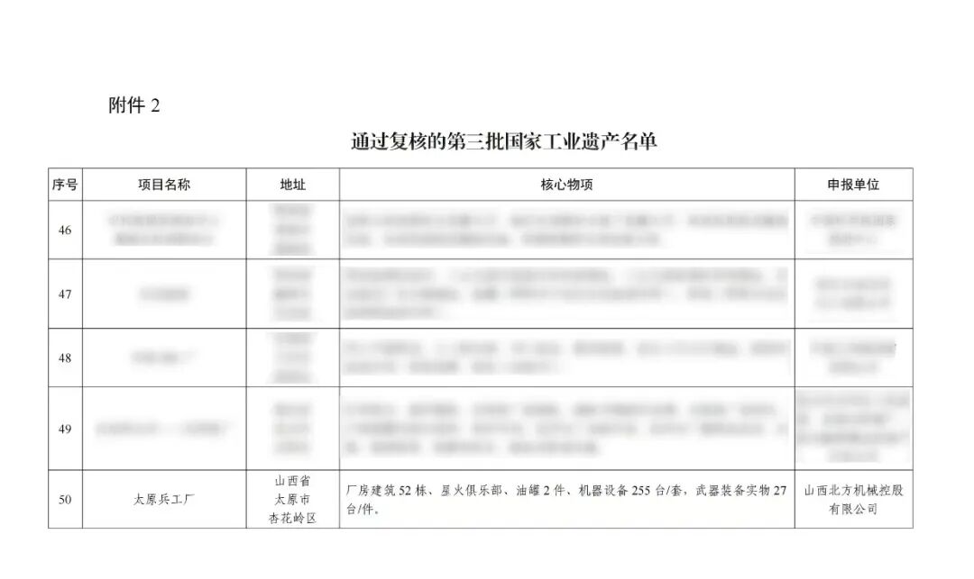 “太原兵工厂”是以清末山西机器局旧址、太原兵工厂百年工业遗址为核心的文化遗产保护区域。