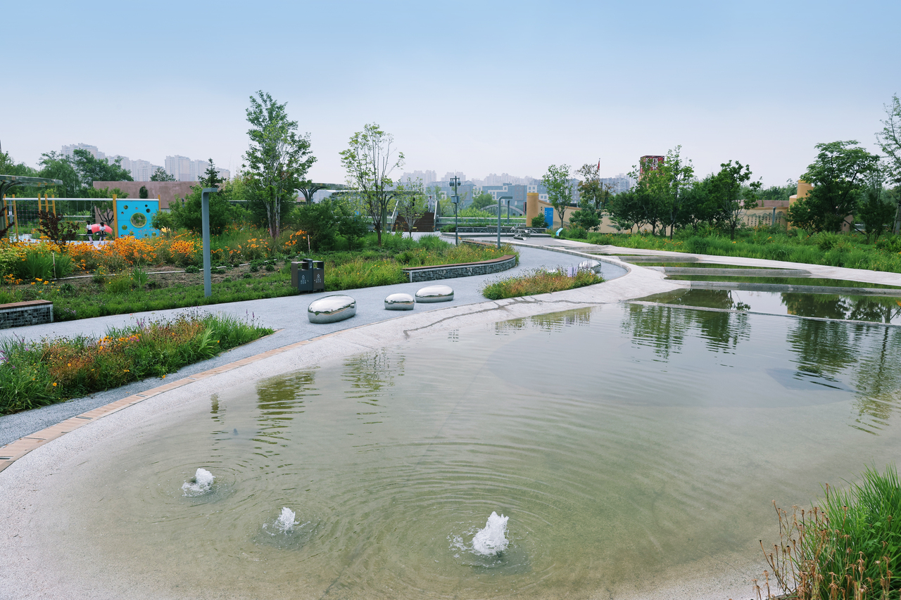 蝴蝶在紫叶黄栌丛中翩跹,孩童的笑声伴着压水井的吱呀声回荡。这不是寻常的城市公园,而是位于通州区的碧水污水地下再生水厂地面景观公园,于7月1日正式揭开面纱,向市民免费开放。漫步其中,油松苍翠,海棠、樱花点缀其间,叠水喷泉奏响清音,若非刻意提醒,谁能想到脚下正进行着日均18万吨污水的深度净化?